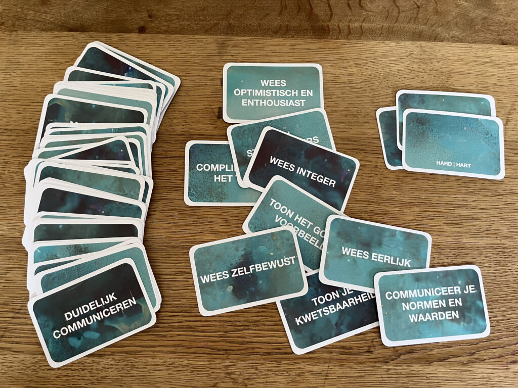 de methode is zo ontwikkeld dat de manager zelf bepaalt aan welke kwaliteiten hij of zij wil werken om dat krachtige gevoel als leider weer terug te krijgen. voor de een heeft dat bijvoorbeeld te maken met geduldiger zijn, en bij een ander om optimistisch en enthousiast te blijven. zo heb ik ruim vijftig kaarten gemaakt met allemaal verschillende kernwaarden die horen bij de rol van een manager.